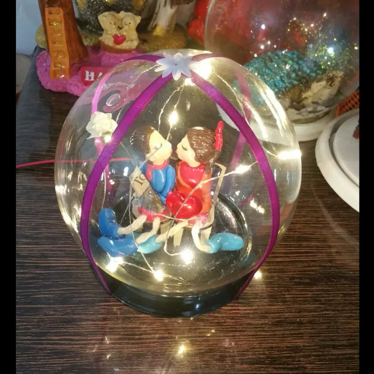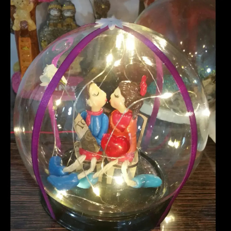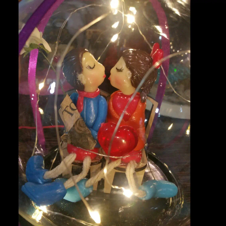 باکس هدیه طرح دختر پسر بوسه ای 😉 زیبا ودوست داشتنی😍 شیشه حبابی کوچک ارتفاع 15سانت دور 10سانت ,چرااغدار usbخور وباتری خور