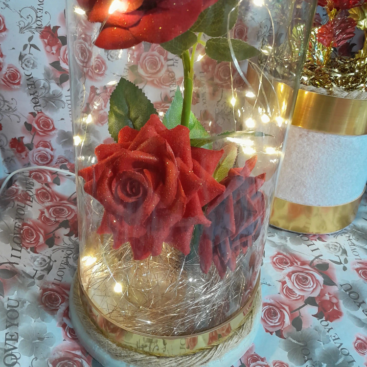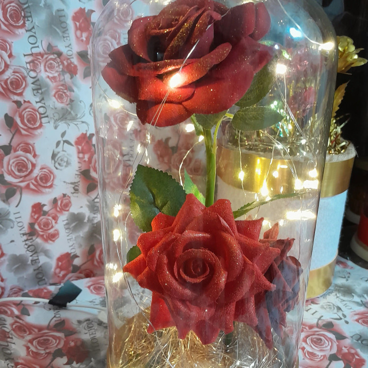 باکس دارای ۳عدد گل رز سفارشی ارتفاع ۳۰دور ۱۴ چراغدار کابلدار بدون نیاز به باتری فوقالعاده زیبا ویژه مشکل پسندها سفارشی ساخت لامپ ریسه ای ،