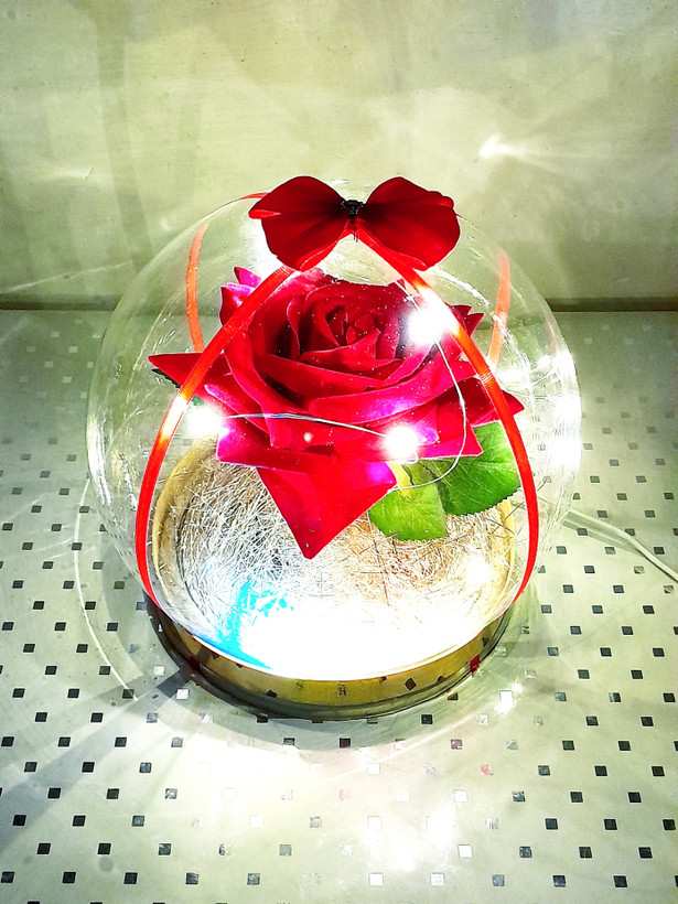 باکس هدیه گل رز بزرگ شیشه فلکسی حبابی