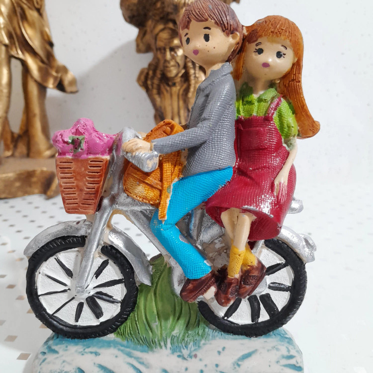 مجسمه دختر پسر دوچرخه سوار پلی استر جنس خوب رنگ عالی قابل شستشو زیبا ودوست داشتنی