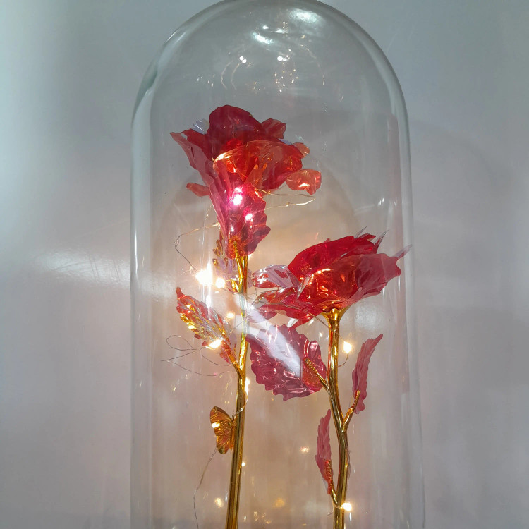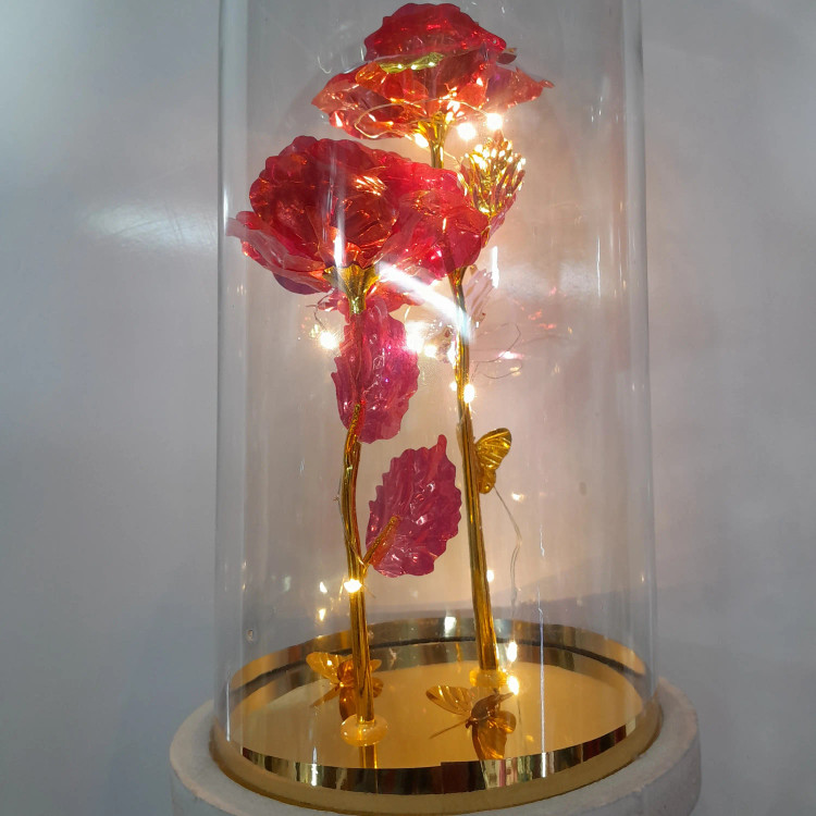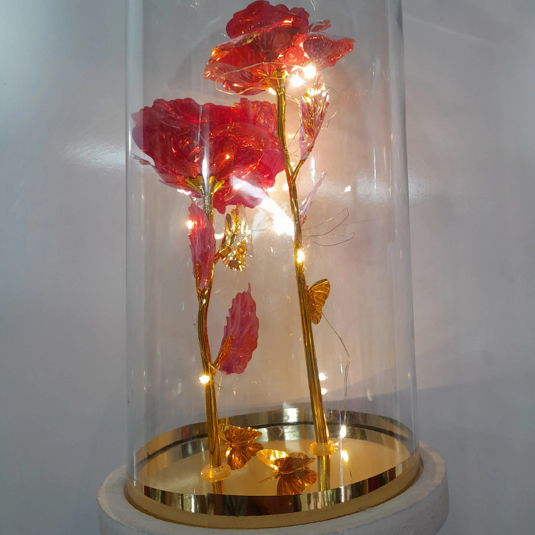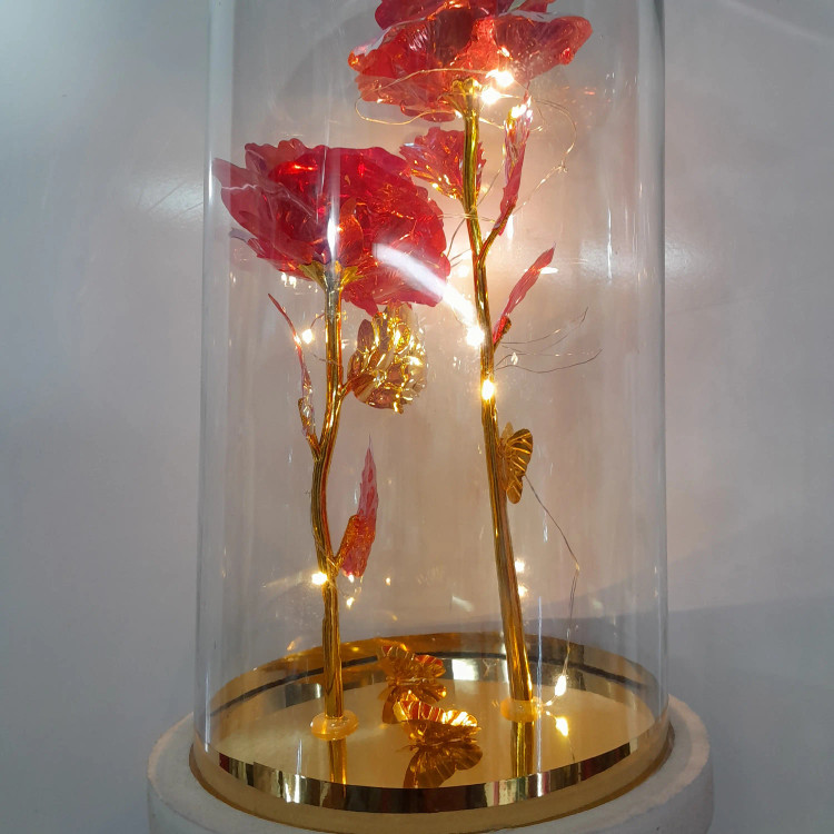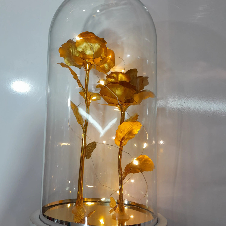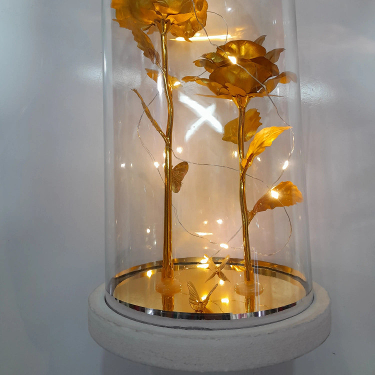 باکس گل رز طلایی دوتایی طرح جدید چراغدار هدیه ولنتاین ،تولد،روزمرد