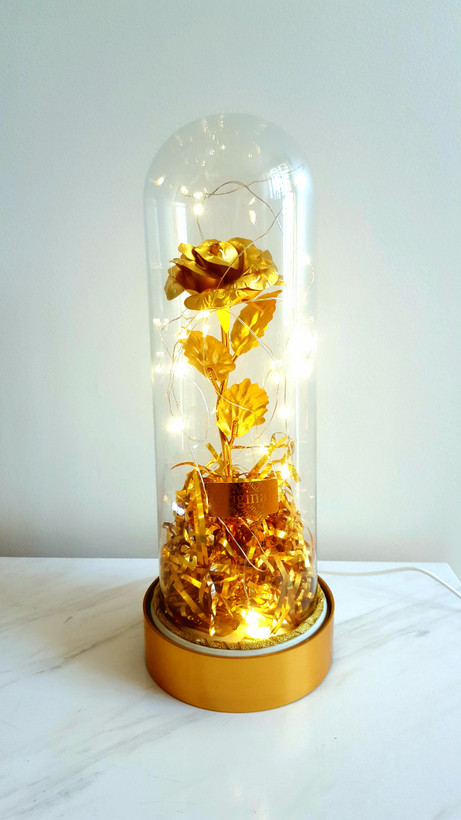 باکس گل رز طلایی شیشه ای چراغدار
