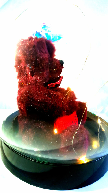 باکس هدیه خرس پولیشی وارداتی با گل رز چراغدار