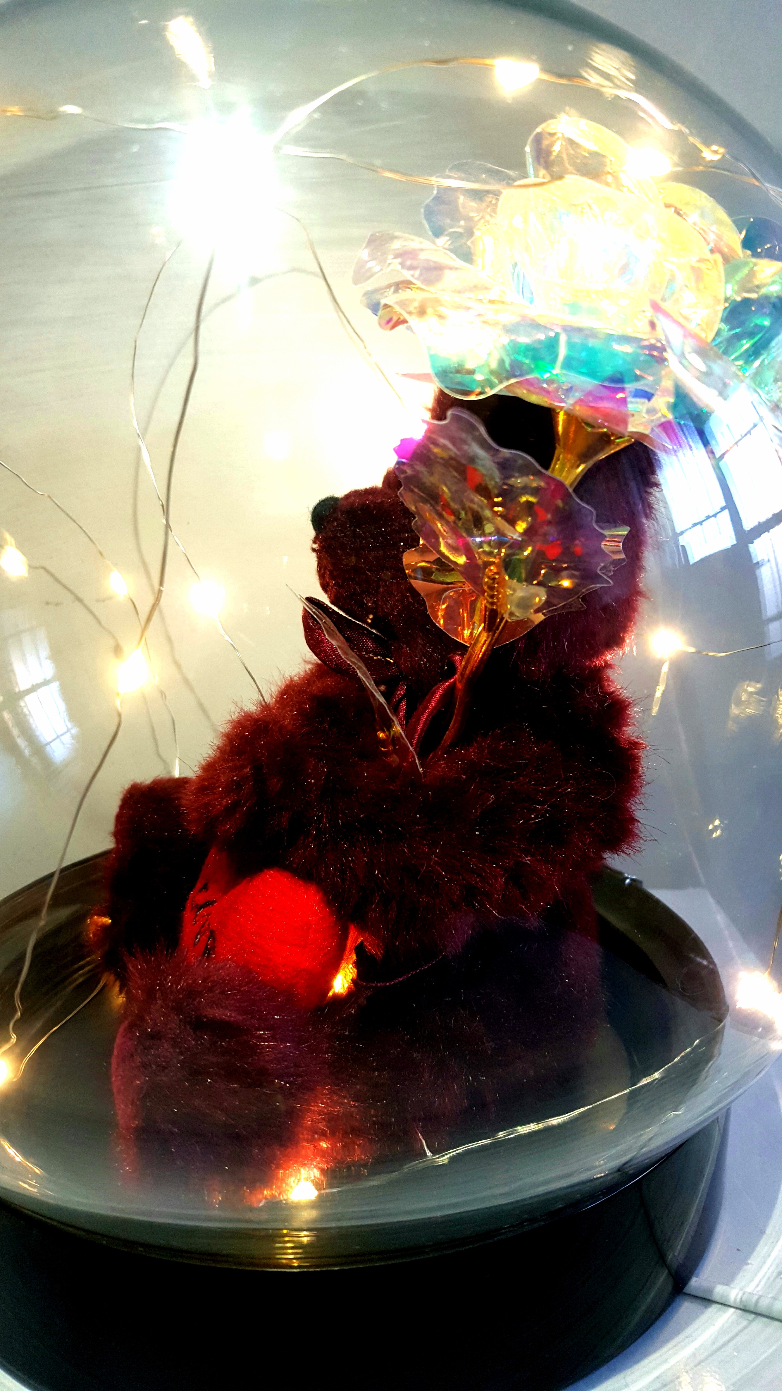 فلکسی باکس هدیه طرح خرسی وگل رز هولوگرامی ،سایز بزرگ ارتفاع ۲۵در عرض ۲۲سانتی ،دارای خرس مارک دار وارداتی وگل رز هفت رنگ ،چراغدار در دو مدل باطری خور وکابلدار،محصولی زیبا وباکیفیت،ویژه مشکل پسندان