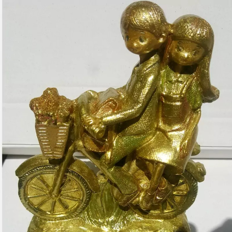 مجسمه کادویی دختر پسر طلایی دوچرخه سوار عاشقانه