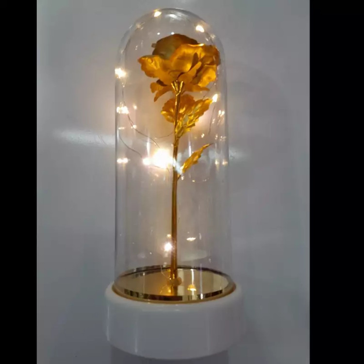باکس هدیه گل رز طلایی طرح جدید زیره سفید چراغدار باتری خور شیک وزیبا