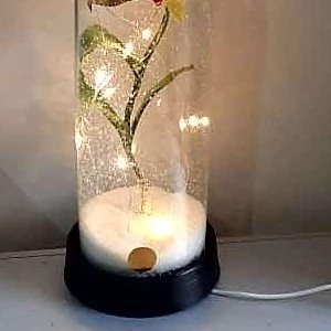 باکس هدیه گل رز یخی طرح زمستان وبارش برف ،طرحی نو وخاص ویژه مشکل پسندان ، باقابلیت ایجاد متن نوشته به دلخواه مشتری .ارتفاع 30دهنه 10 چراغدار .