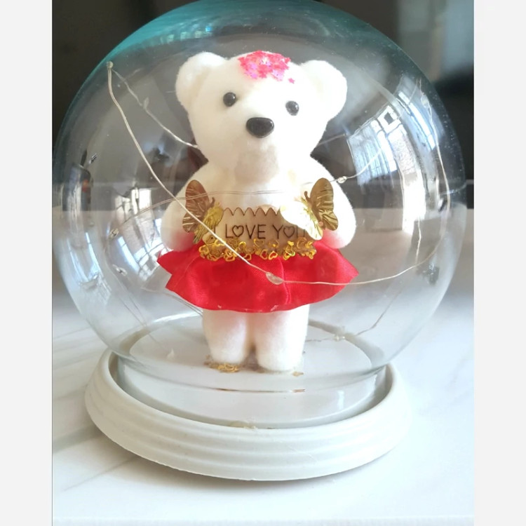 باکس هدیه شیشه ای چراغدار طرح خرس نازو خوشگل بامتن نوشتهilove you 😍