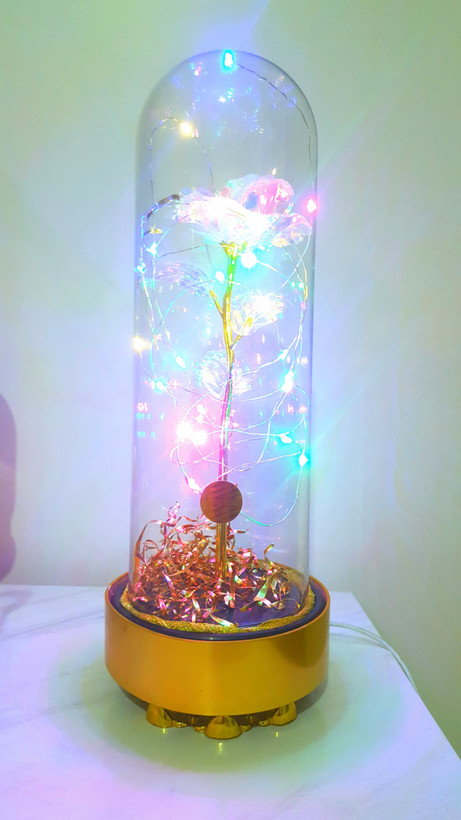 باکس هدیه گل رز شیشه ای چراغدار رنگبندی جور