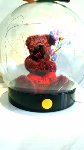 باکس هدیه گل رز شیشه حبابی چراغدار